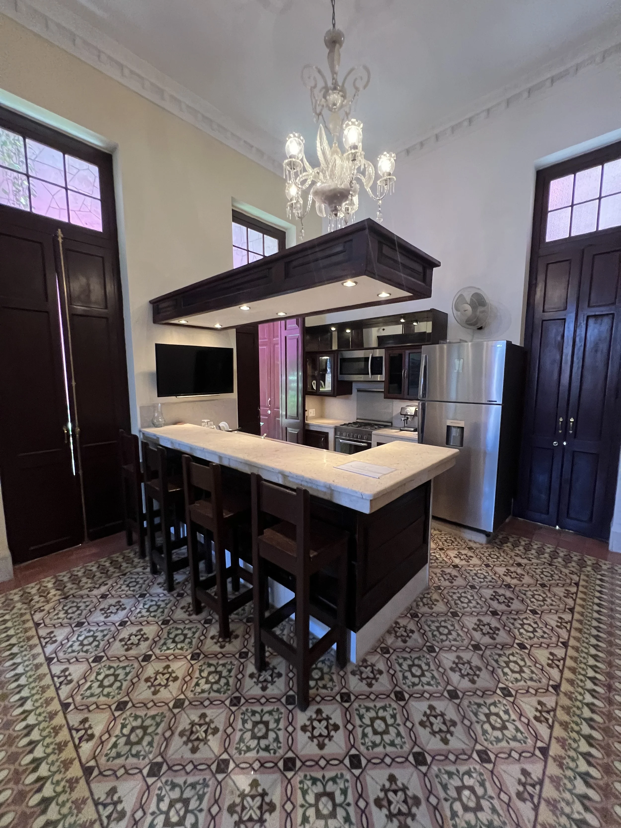 El Hostal ofrece tres salas comun reservadas para el uso exclusivo de los clientes. Una sala con sofas para relajarse. Un juego de comedor antigua colonial de madera preciosa caoba que puede acomodar hasta 8 personas para desayunos o cenas grastronomicas. En la tercera saleta encontraron un bar cocina agradable para conversar y tomar un trago o comerse un snack de la casa.