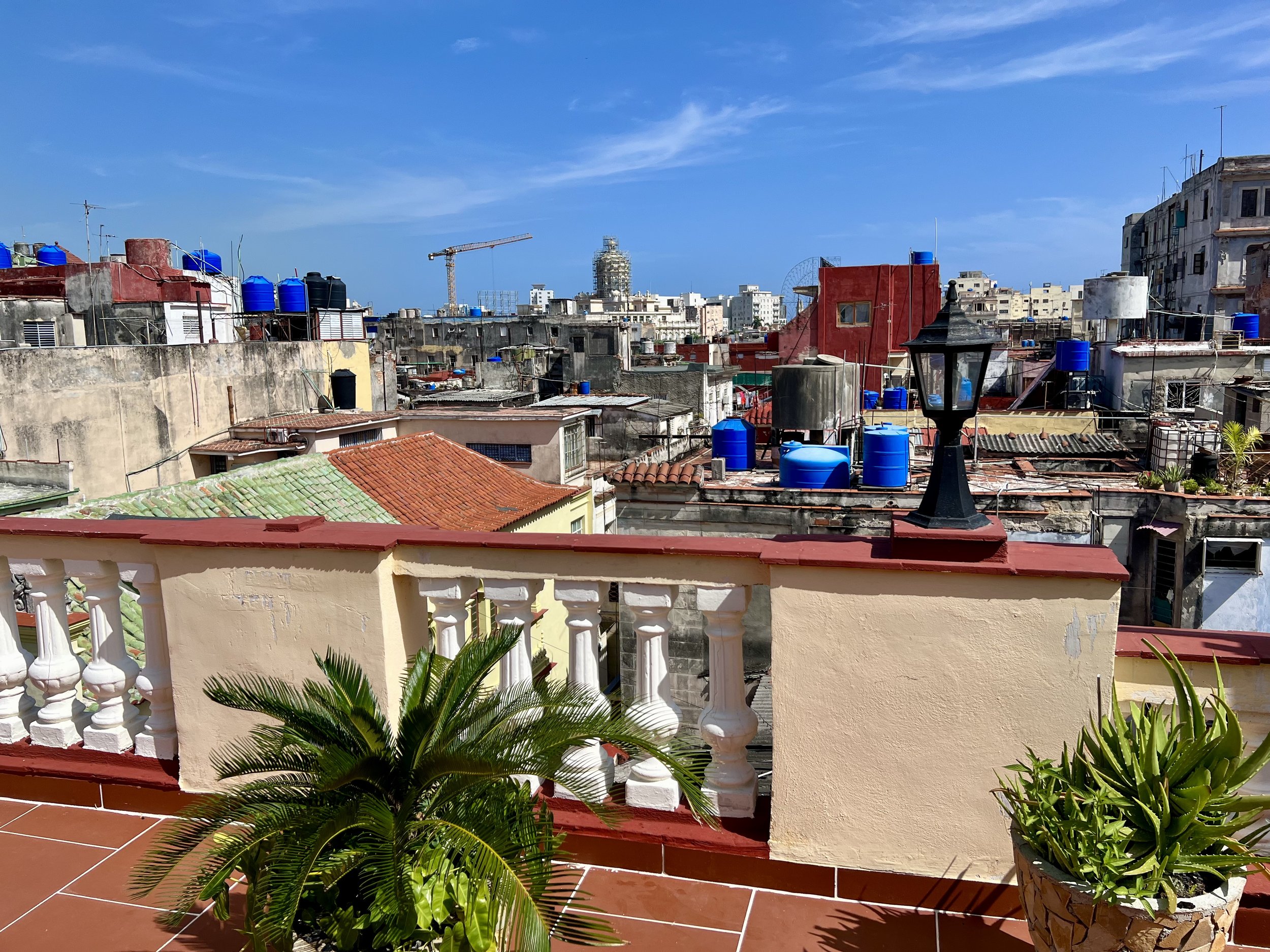 Los dos respiraderos del edificio fueron completamente restaurado con piedras naturales para dar luego a jardines tropicales interiores. Finalmente la terraza a la azotea de 150 metros cuadrado ofrece una vista paranoica de 270 de grados sobre La Habana. Ideal para coger sol, tomar fotos y difrutar un sabroso mojito después de un dia de descubrimiento en la Habana Vieja .
