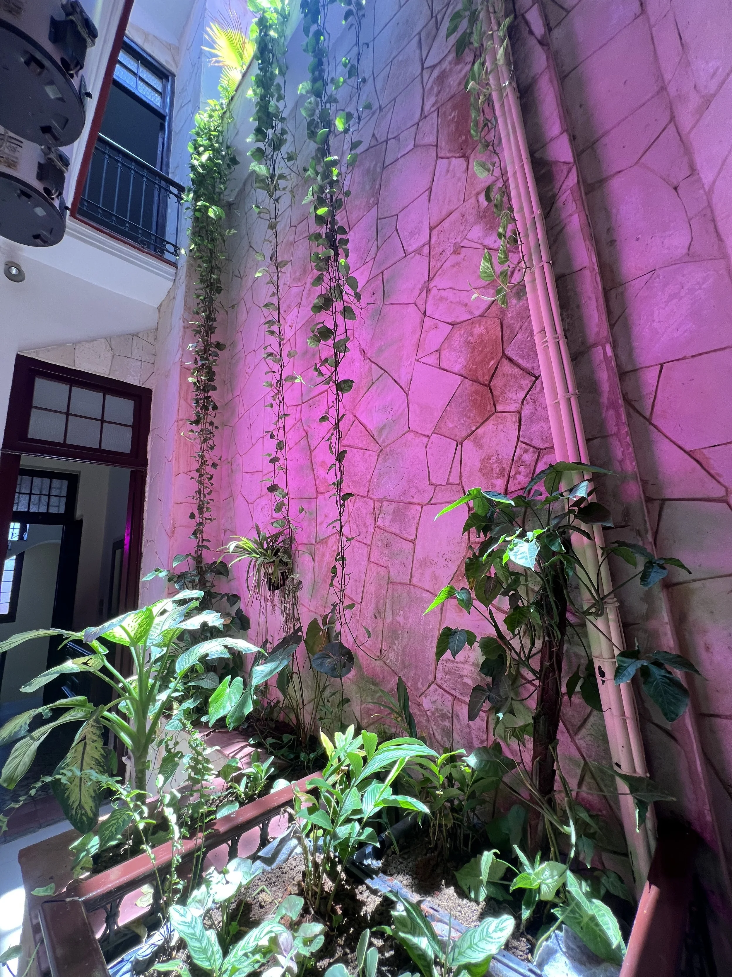 Dans le troisième salle se trouve un bar ou l’on peut discuter et prendre un verre ou manger un snack de la maison. Les deux immenses puits de lumière du bâtiment ont été entièrement restaurée avec des pierres naturelles afin d’y aménager des jardins tropicaux intérieurs. Enfin, la terrasse sur le toit de 150 mètres carrés offre une vue panoramique de 270 degrés sur La Havane. Idéal pour prendre du soleil, faire des photos et boire un savoureux mojito après une journée de découverte dans la Vieille Havane.